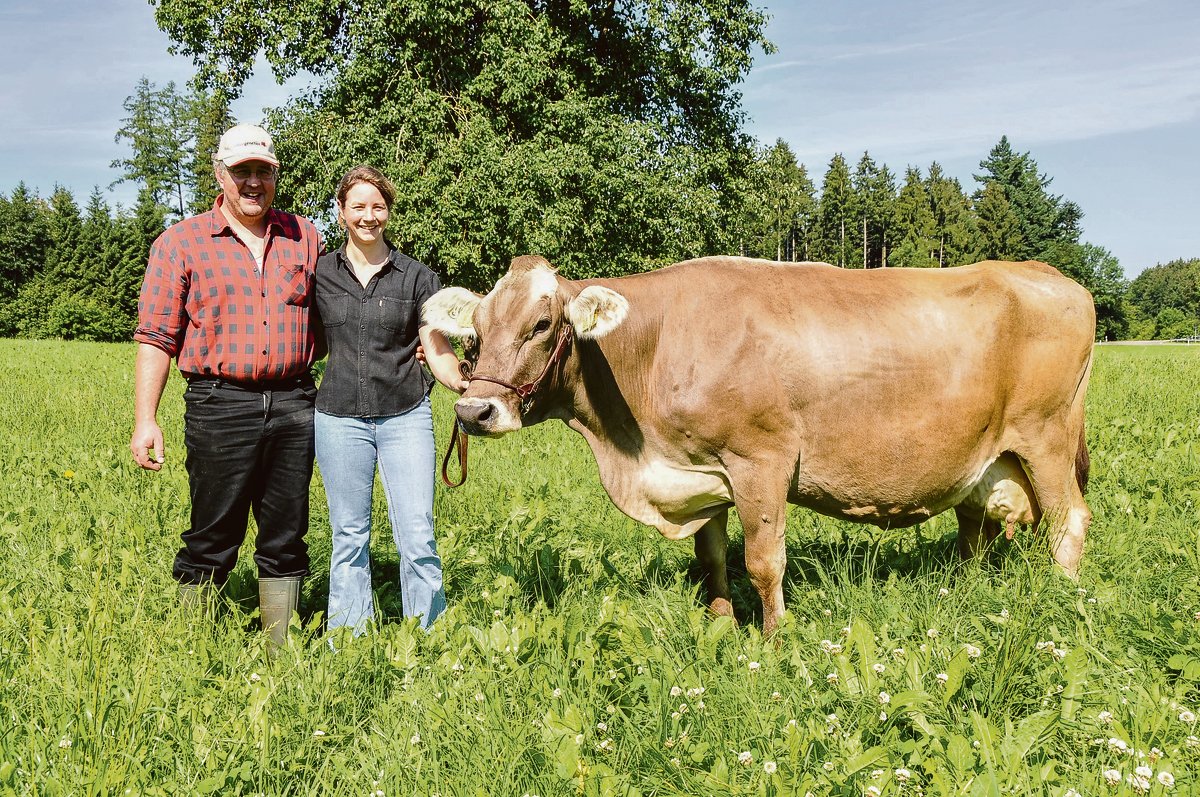 Für Albrecht ist sie was ganz Besonderes: «Obwohl sie nur jedes zweite Jahr gekalbt hat, lieferte sie bis zu 12'000 kg Milch pro Jahr mit 4,51% Fett und 3,64% Eiweiss», sagt Albrecht stolz. Vor 10 Tagen hat er Jason Kenia das letzte Mal gemolken. Was ist das Erfolgsrezept? «Gesunde Natur», sagt der IP-Suisse-Bauer. Von Frühling bis Herbst sind seine Braunviehkühe auf der Weide, manchmal auch im Winter, wenn kein Schnee liegt.