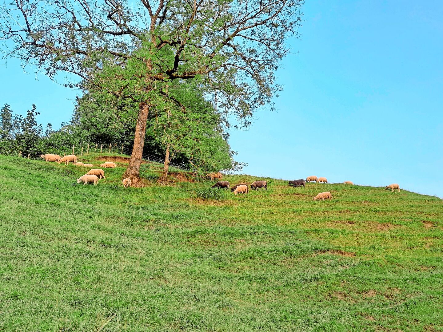 In den letzten Wochen hat die anhaltende Hitzeperiode die Weiden stark ausgetrocknet. Das Futterangebot ist limitiert, die Schafe stehen im Schatten und haben offensichtlich Mühe mit der Wärme. Bedingt durch ihr Verdauungssystem, das fortlaufend Wärme abgibt, sind die Tiere ideal ausgerüstet für Temperaturen unter 15 Grad Celsius. Dass sie nicht richtig schwitzen können und die Wärmeabgabe lediglich über schwach…