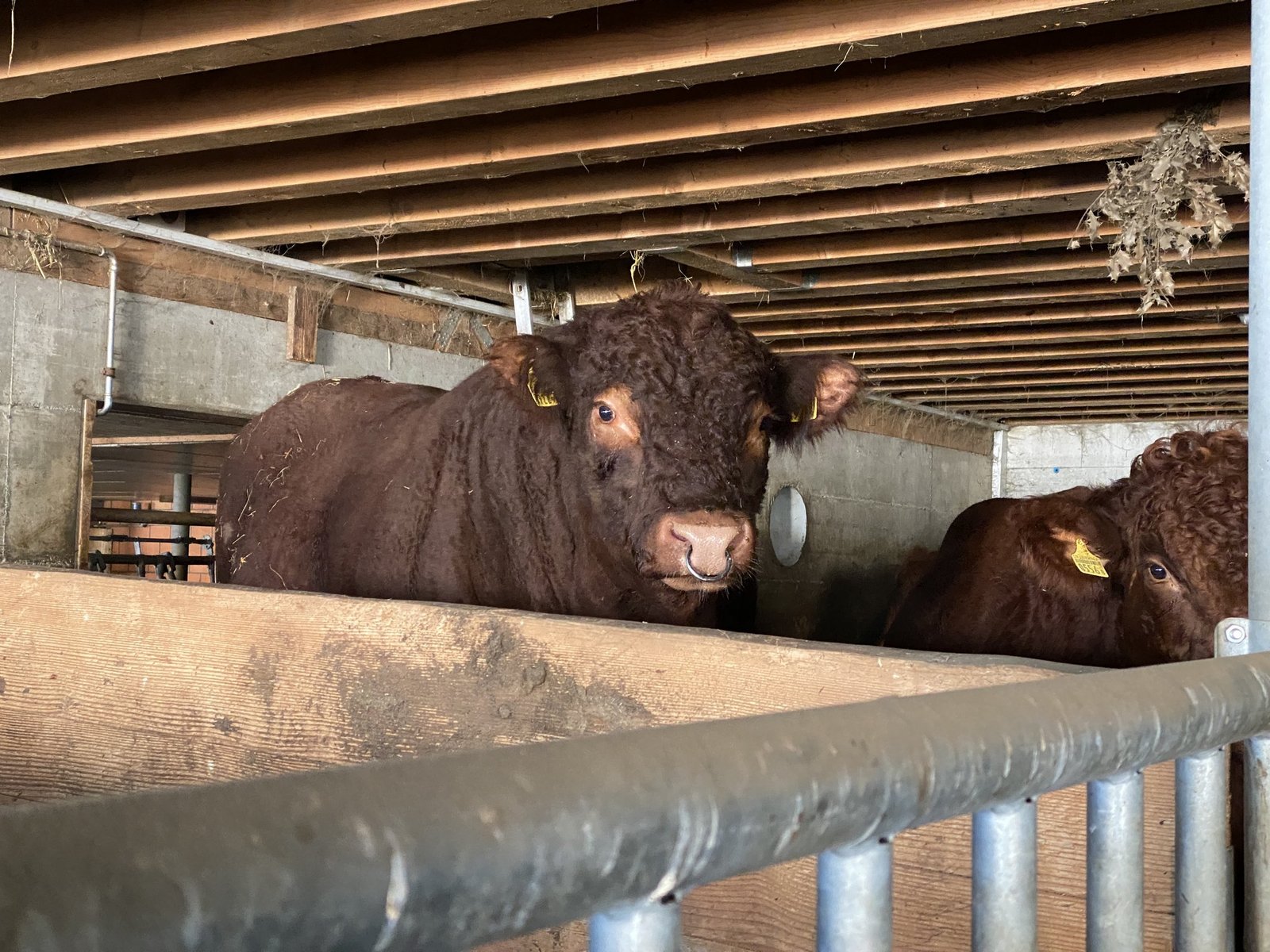 Seine Tiere kennt der Bio-Bauer nicht nur wegen des Kontakts im Stall sehr gut – Er remontiert ausschliesslich selbst. Dafür läuft ein Muni in derjenigen Gruppe Kühe mit, die belegt werden sollen. Bevor es zu Inzucht kommt, tauscht Andreas Moor den Muni mit anderen Züchtern aus dem Luing-Rassenclub. Gelegentlich werde für frisches Blut einer aus Schottland importiert. Als Züchter legt Moor vor allem Wert auf Rahmen und Fundament. Da Luing in der Schweiz noch nicht 100 Prozent hornlos sind, wachsen ab und zu auch auf dem Hasliberg einem der Kälber Hörner. «Ich enthorne keines, aber es wird dann halt geschlachtet», meint der Berner. Manchmal reue es ihn schon, aber das Zuchtziel für die Schweiz ist klar die Hornlosigkeit. In Schottland, dem Ursprungsland der Rasse, werde das weniger gewichtet.