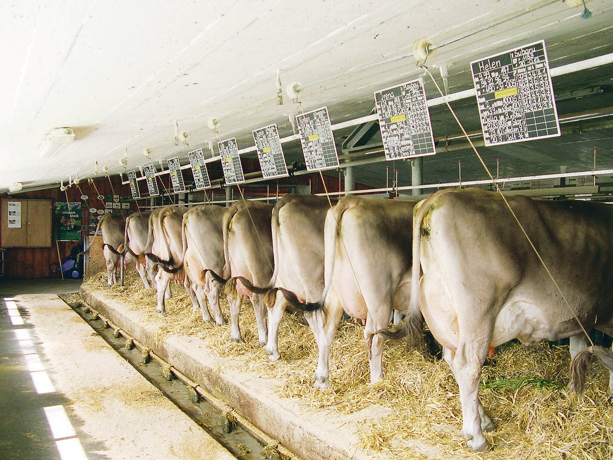 Rinder, die angebunden gehalten werden, müssen regelmässig, mindestens jedoch an 60 Tagen während der Vegetationsperiode und an 30 Tagen während der Winterfütterungsperiode, Auslauf erhalten. Sie dürfen höchstens zwei Wochen ohne Auslauf bleiben. Der Auslauf ist in einem Auslaufjournal einzutragen.
