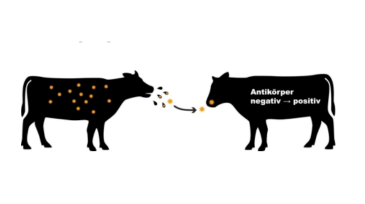 So angesteckte Tiere haben eine akute BVD und sind, wenn sie die Krankheit überstanden haben, dagegen immun. In ihrem Blut kann man Antikörper nachweisen.