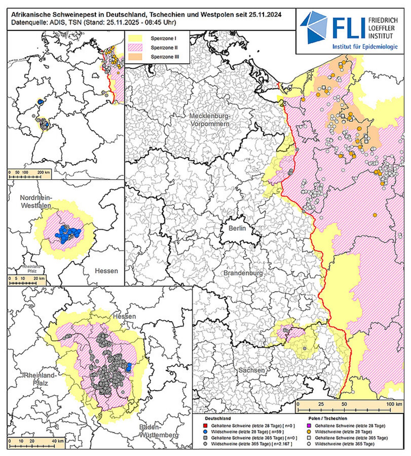 Peter und Kathrin Seeger führen im Otzberg im deutschen Bundesland Hessen einen Landwirtschaftsbetrieb mit Mastschweinen. Lange war die afrikanische Schweinepest (ASP) für sie kein Thema – bis am 15. Juni 2024 ein erster positiver Befund in ihrer Gegend auftaucht. Seither liegt ihr Betrieb mitten in den neu errichteten Quarantäne-Sperrzonen. Die Auswirkungen auf die Bewirtschaftung sind enorm. Neben zusätzlichen…