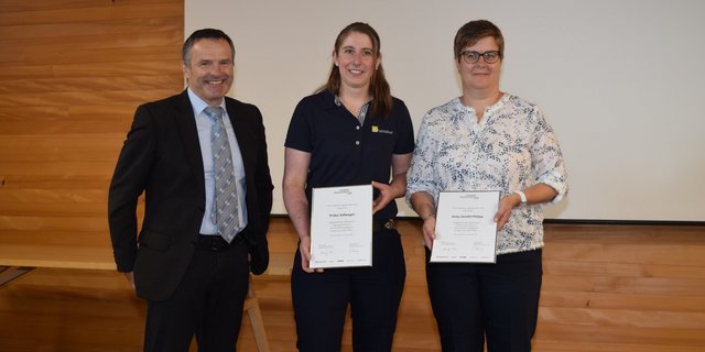 Schlussnoten 6.0 und 5.9: Bäuerin Anita Gstöhl und Meisterlandwirtin Priska Zellweger erhalten den Agrarmedienpreis