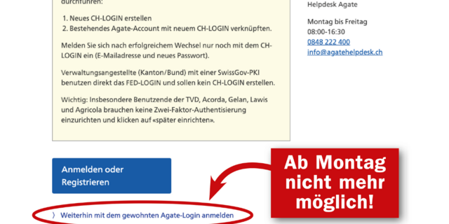 Agate ist in den letzten Zügen – bald wird der Wechsel auf CH-Login erzwungen