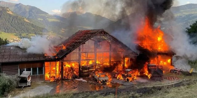 Scheunenbrand tötet eine Kuh und sechs Kälber