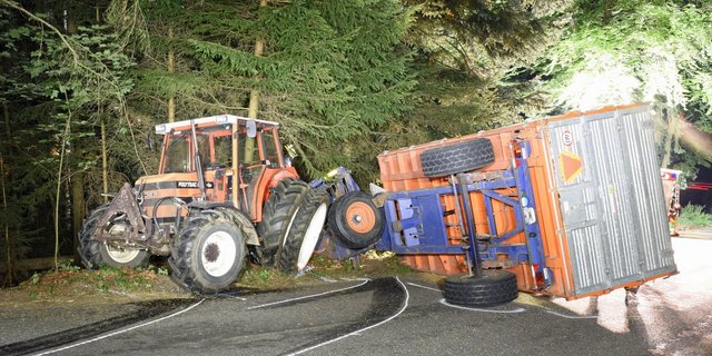 Traktorhänger kippt in Alpnach OW bei Unfall